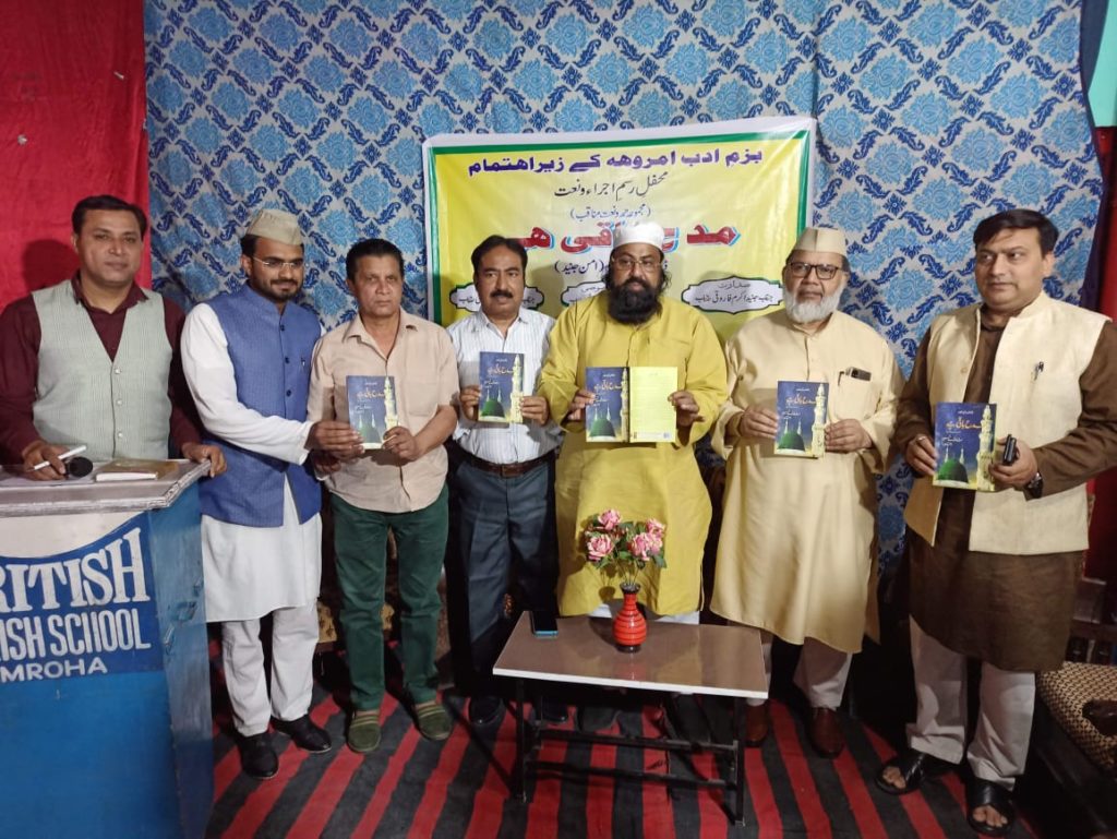 بزم ادب امروہا کی جانب سے ڈاکٹر شاہ فیہد نسیم (امن جنید )کے مجموعہ نعت و منقبت مدح باقی ہے کی رسم اجرا کی مناسبت سے ایک پروگرام منعقد کیا گیا۔ رسم اجرا ہاشمی ڈگری کالج کے بانی اور شہر کے معروف سماجی کارکن ڈاکٹر سراج الدین ہاشمی کے ہاتھوں انجام پائی۔