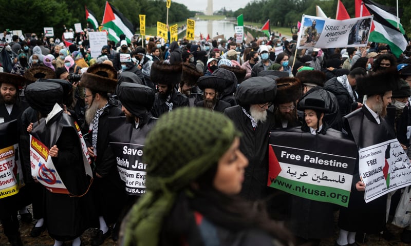 واشنگٹن میں فلسطین حامیوں کی ریلی۔