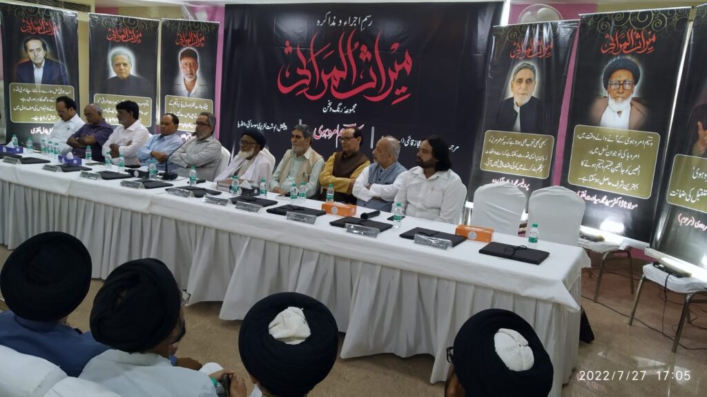 تقریب میں مولانا ڈاکٹر شہوار نقوی، مولانا پیغمبر عباس، مولانا ڈاکٹر احسن اختر سروش، مولانا کوثر مجتبیٰ، مولانا شاداب حیدر، مولانا رضا کاظم تقوی (پرنسپل سید المدارس)، مولانا محمد مصطفیٰ وسیم، مولانا اعجاز حیدر، مولانا اظہر عباس اور مولانا مظہر علی کی موجودگی نے تقریب میں روحانی فضا قائم کردی تھی۔ ‘میراث المراثی’ کتاب وسیم امروہوی کے نظم کردہ پانچ مراثی اور کربلا کے واقعات کی عکاسی کرنے والے مصوری کے شہ پاروں پر مشتمل ہے۔کربلائی مصوری کے یہ شہ پارے امروہا کے تاریخی عزاخانہ اکبر علی میں آویزاں ہیں۔رسم اجرا کے موقع پر بھی چند شہ پارے نمائش کے لئے رکھے گئے تھے۔