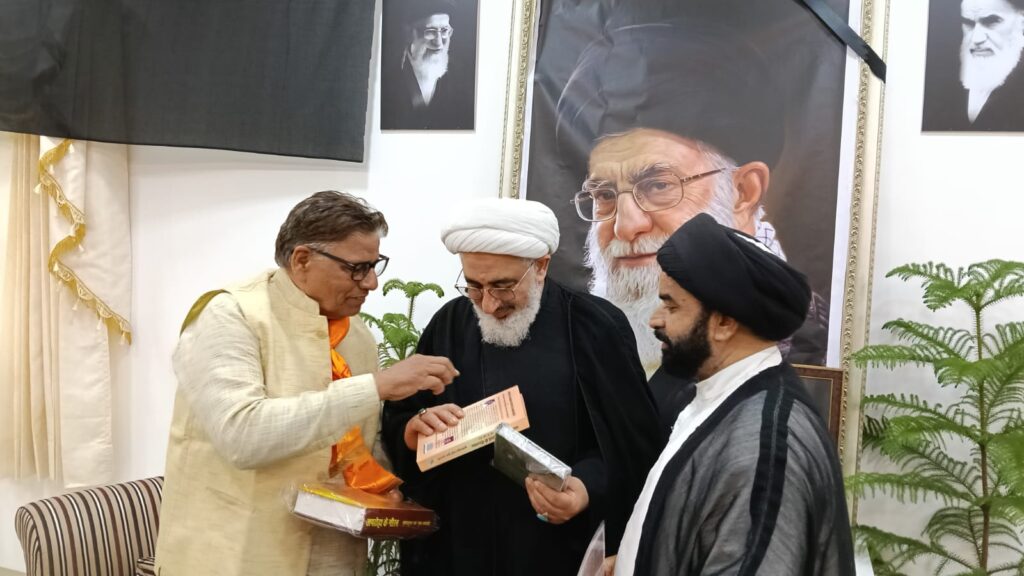 خطیب اہل بیت مولانا ڈاکٹر سید شہوار حسین نقوی اور مداح اہل بیت بھونیش کمار شرما بھون امروہی نے آیت اللہ العظمی مجتبیٰ خامنہ کے ہندستان میں وکیل حجت الاسلام والمسلمین ڈاکٹر عبد المجید حکیم الھی سے دہلی میں ملاقات کی اور رھبر معظم آیت اللہ خامنہ ای کی مظلومانہ شہادت پر تعزیت پیش کی ۔ مولانا شہوار نےامامیہ ریسرچ سینٹر کی جانب سے ڈاکٹر عبد المجید حکیم الھی کی خدمت میں تعزیت نامہ پیش کیا۔ ڈاکٹر شہوار نقوی نے کہا کہ ہم نے ایک عظیم ہمدرد ، شجاع اور بہادر رہبر کھودیا ہے وہ صرف مسلمانوں ہی کے رہبر نہیں بلکہ پوری دنیا کے مظلوموں کے رہبر تھے۔