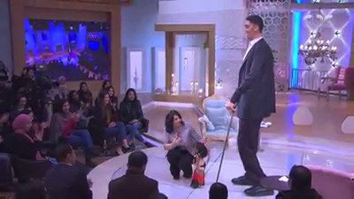 ذرا تصور کیجئے دنیا کا سب سے لمبا شخص اور دنیا کی سب سے چھوٹی خاتون اگر ایک ساتھ نظر آ ئیں تو کیسا لگے گا۔ ترکی میں یہ تجربہ کیا گیا۔ترکی میں ایک شو کے منتظمین نے دنیا کے سب سے لمبے شخص ترکی کے سلطان کوسین اور دنیا کی سب سے چھوٹی خاتون ہندستان کی جیوتی آمگے کو ایک ہی اسٹیج پر یکجا کردیا۔